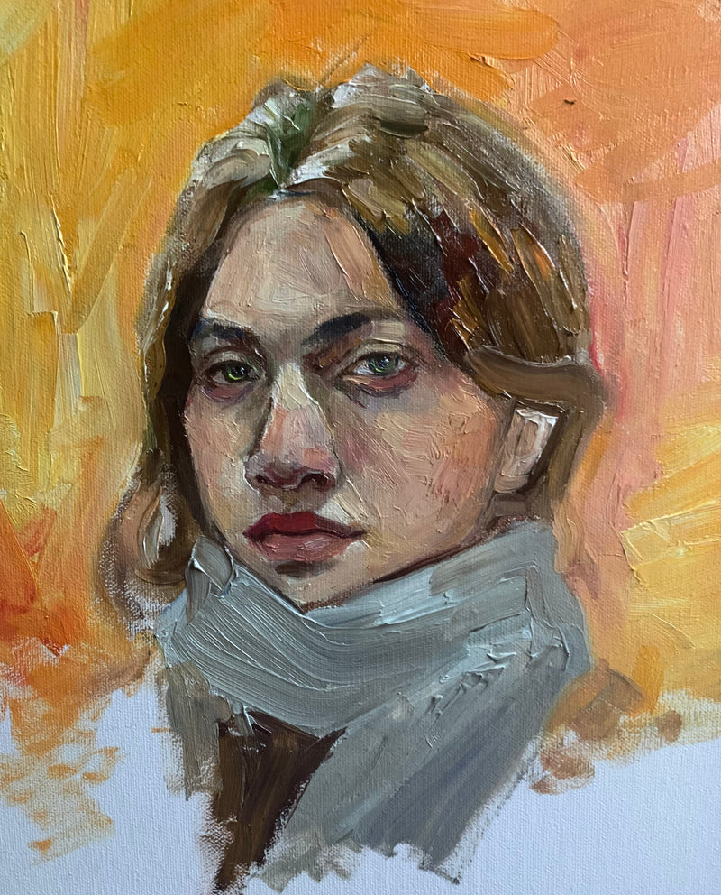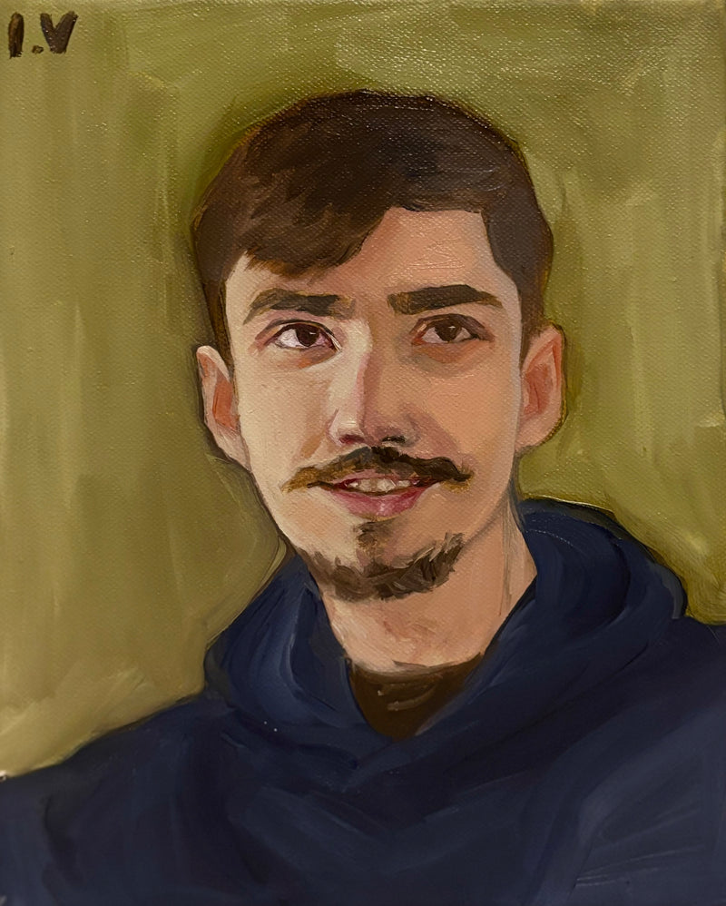 I am an artist from Vilnius, Lithuania currently living in Kaunas. I have been interested in different types of art since childhood. Even in elementary school, everyone knew me as "the classmate who can draw." However, my more advanced development in the field of art began when I enrolled in the Justinas Vienožinskis Art School. Outside of art school, I participated in many theatrical events at my high school. In 2020, I successfully completed all four years of school and defended my first diploma of fine arts. After graduating from art school, I realized that art is more than just meticulous drawing — it is an idea, a thought, diversity, brushstrokes and texture, history and memories. I want to continue sharing my talent with people and helping to immortalize moments in brushstrokes.